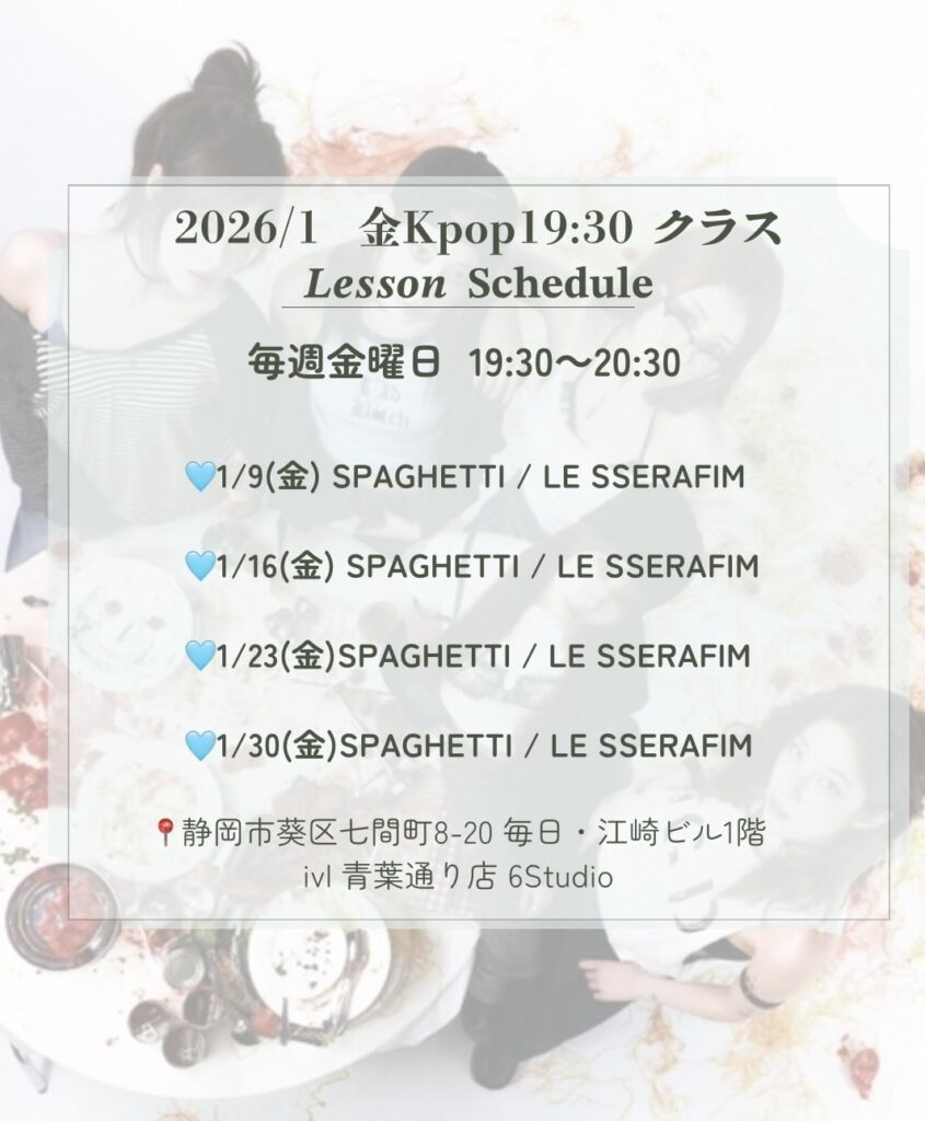 2026年1月の金曜日19:30 K-POPクラスのレッスンスケジュールをご紹介します✨