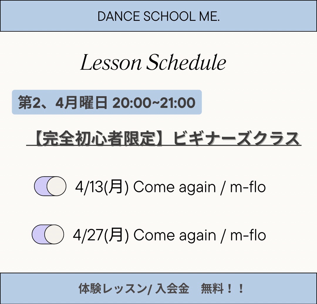 4月のビギナーズクラスのレッスンスケジュールをお知らせします🗓✨