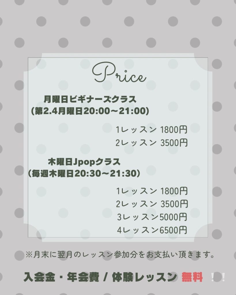 ・ビギナーズ/jpopクラスのみ料金が異なります